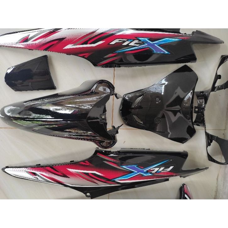 TERLARIS Cover Full Body Halus Honda Supra Fit New /Fit X Fit 110 Cc Hitam Plus Striping