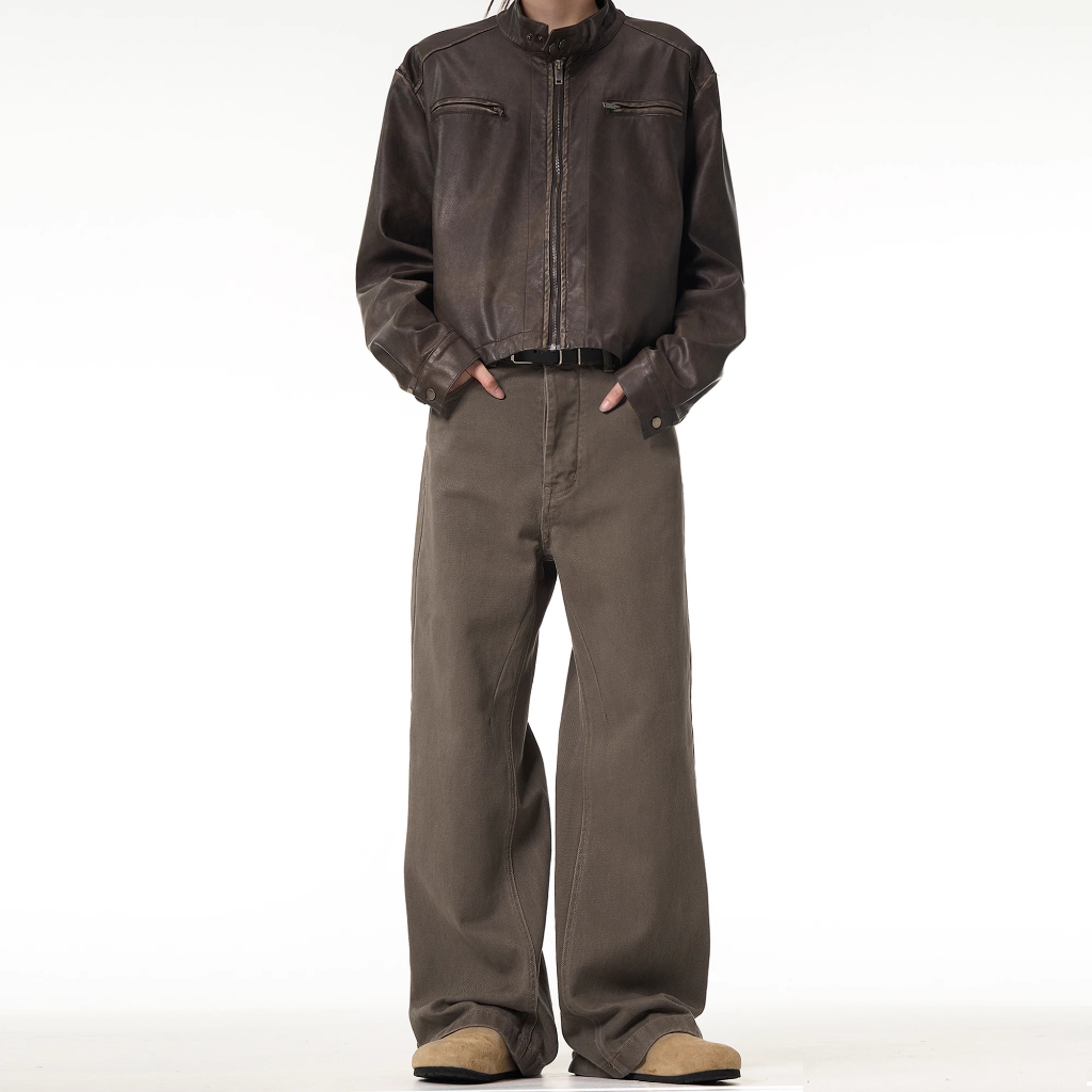 Celana Jeans Pria Terbaru Coklat Korean Polos - Cut Lurus Santai Desain Eksklusif & All Match Gaya Distro