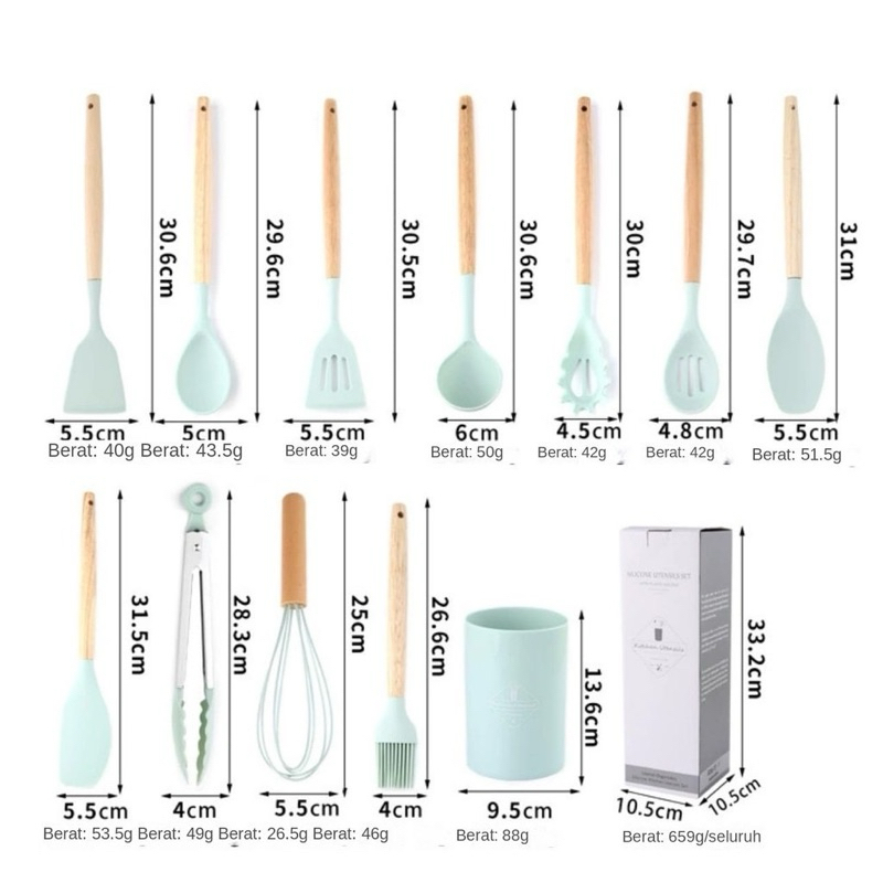 Silicon Spatula Set 12in1 / Peralatan Alat Dapur Masak 12 pcs Anti Panas