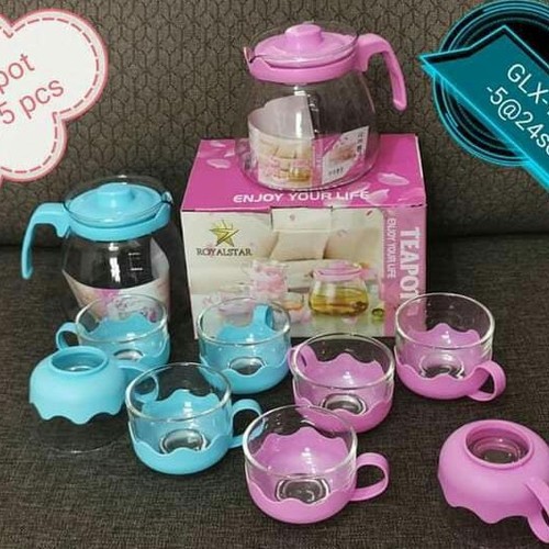 Tea Pot Set 5 In 1 Sun Glass - Paket Teko Gelas Cangkir Tempat Minum - Teapot All In One
