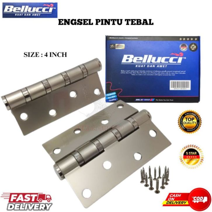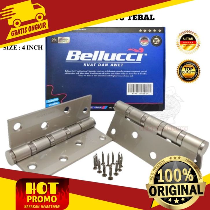 Bellucci Engsel Pintu Tebal 4" Inch x 3mm Jendela Rumah Kamar Lemari Stainless Steel Silver Engsel 4