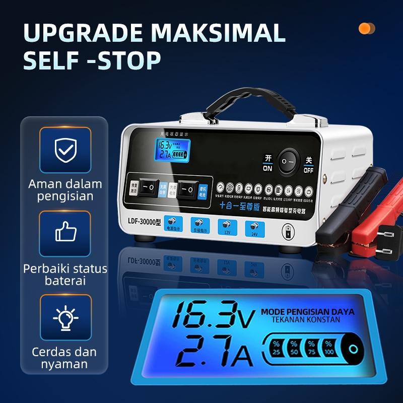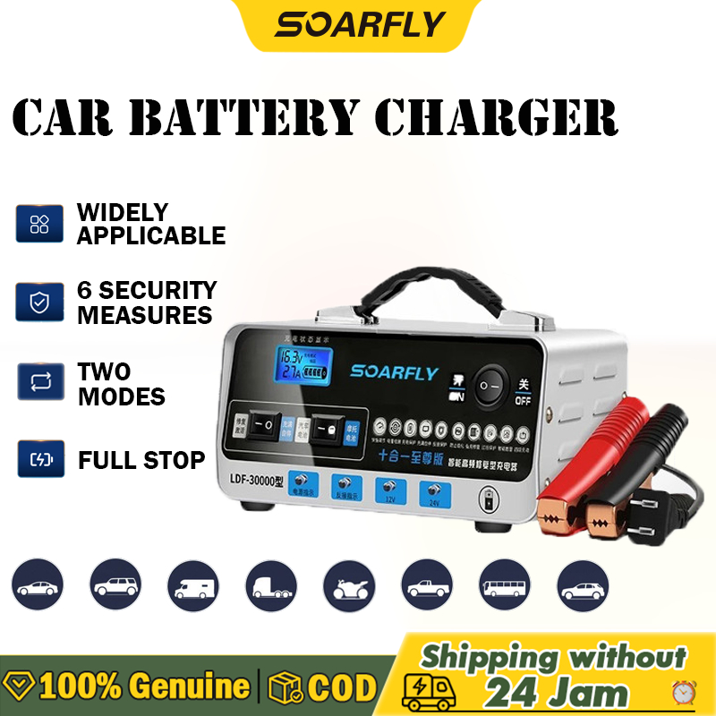 SOARFLY Car Battery Charger Pengisi Daya Aki Mobil 800A Tugas Berat Pengisian Cepat Pengisian Cepat 12v24v 400W 800Ah/Charger Otomatis Aki Motor