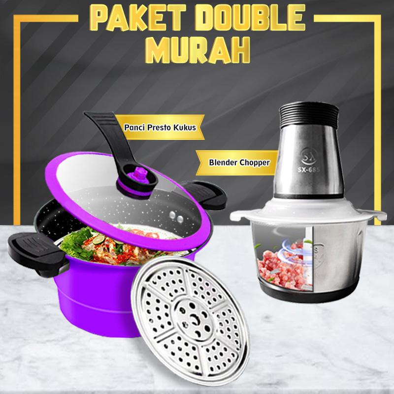 (SS) Paket Bundling Hemat Double Peralatan Dapur Set Panci Presto Kukus dan Blender Chopper Stainless