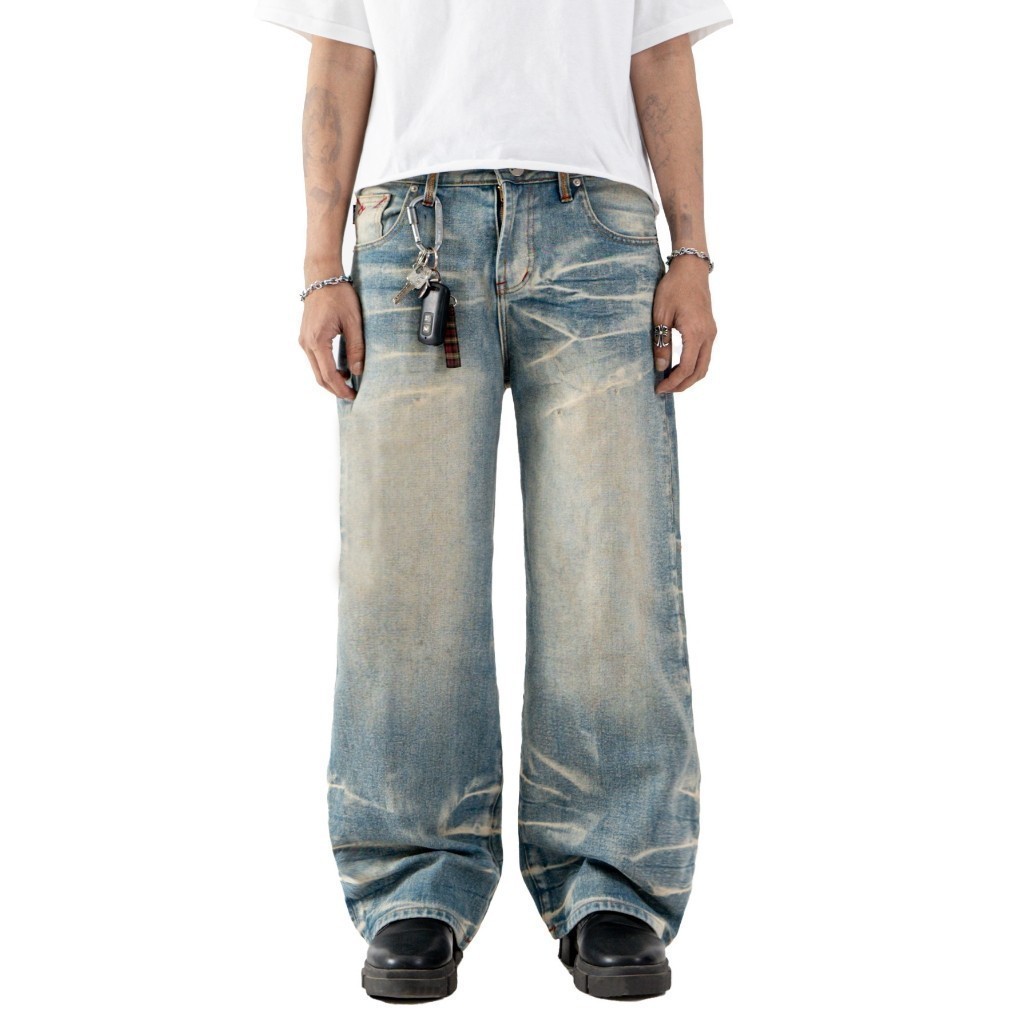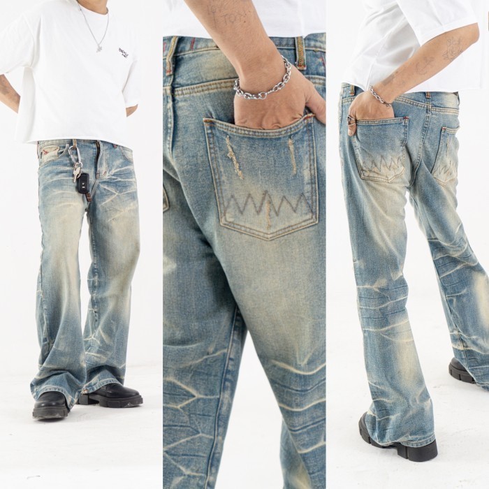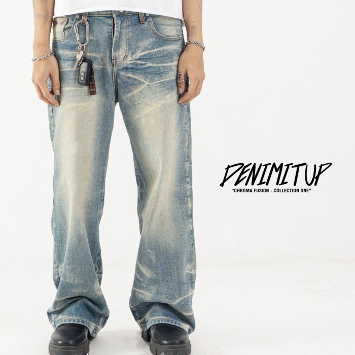 H1 Baggy Celana Jeans Cream Blue Non-Stretch