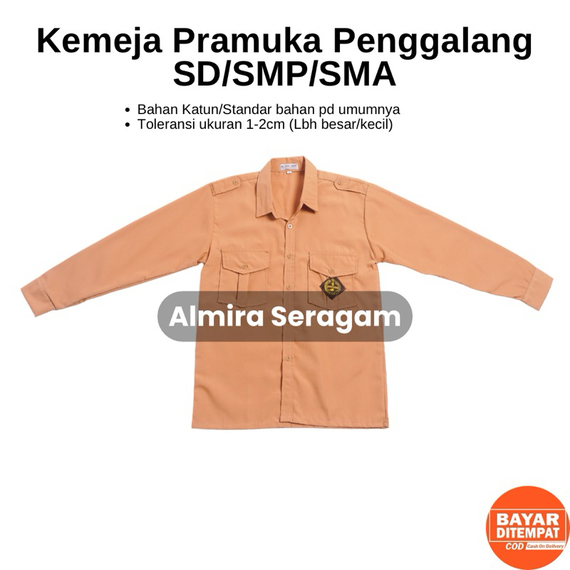 Almira Seragam Sekolah Baju Kemeja Pramuka Lengan PANJANG Penggalang Penegak Pembina Seragam Sekolah SD SMP SMA Coklat COWOK LAKI