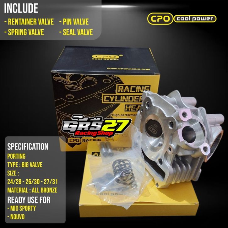 CYLINDER HEAD BLOK HEAD CPO YAMAHA MIO SPORTY/SMILE NOUVO KLEP BESAR 24/28 GEN 2 NON PORTING SQUISH ALBRONZE ORIGINAL