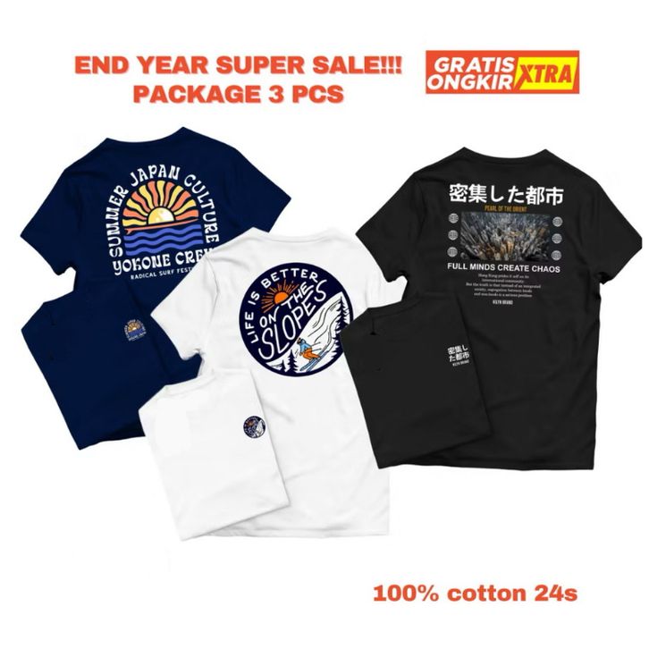 1Set 3 pcs Kaos Pria Bahan katun 24s Pakaian Baju Tshirt Kaos 3in1 Pria dan Wanita BY ORIGINAL PRODUCT