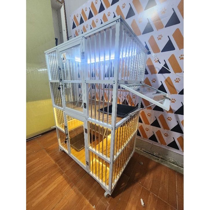 Kandang Kucing Aluminium 2 Pintu 2 Lantai + Pintu Samping