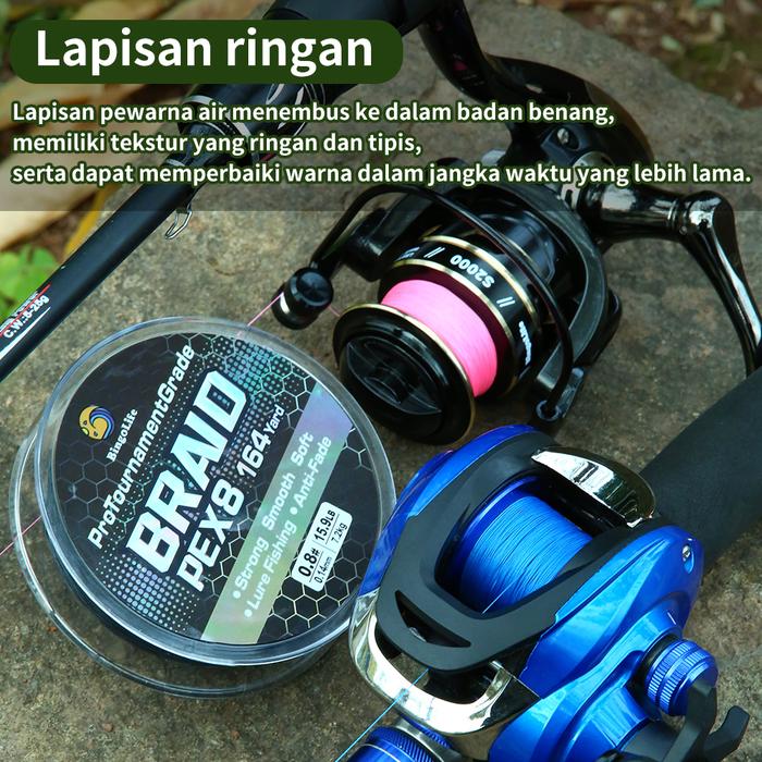 Bingolife 150m Memancing Pewarna Air Hitam Biru Lembut Halus PE Standar Diameter 5.9kg 39.0kg