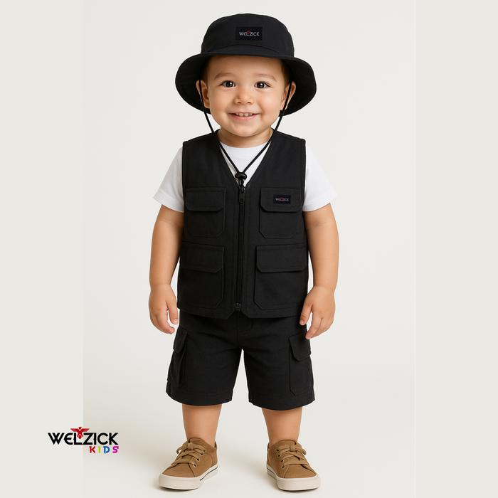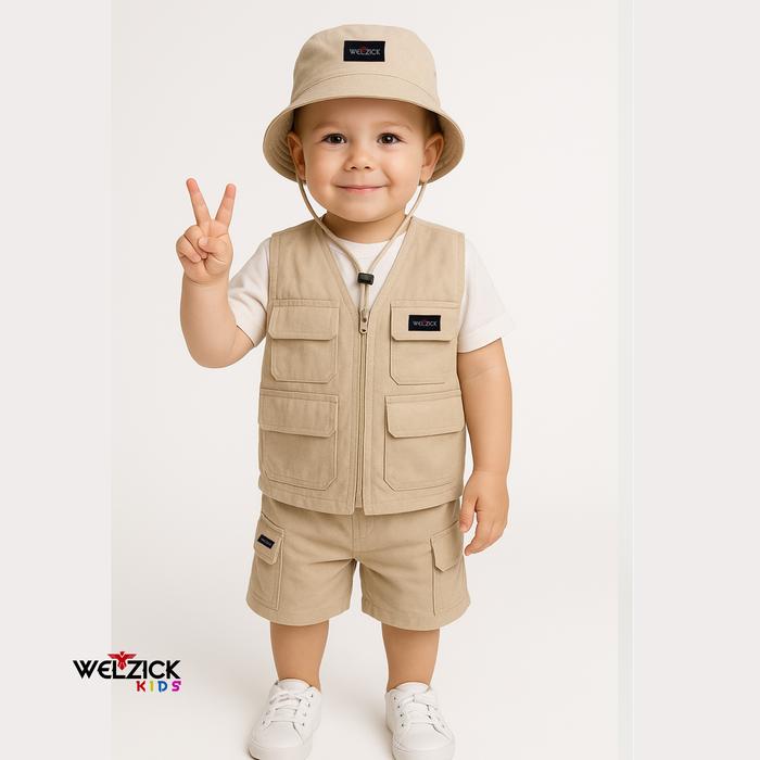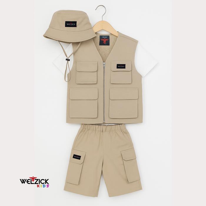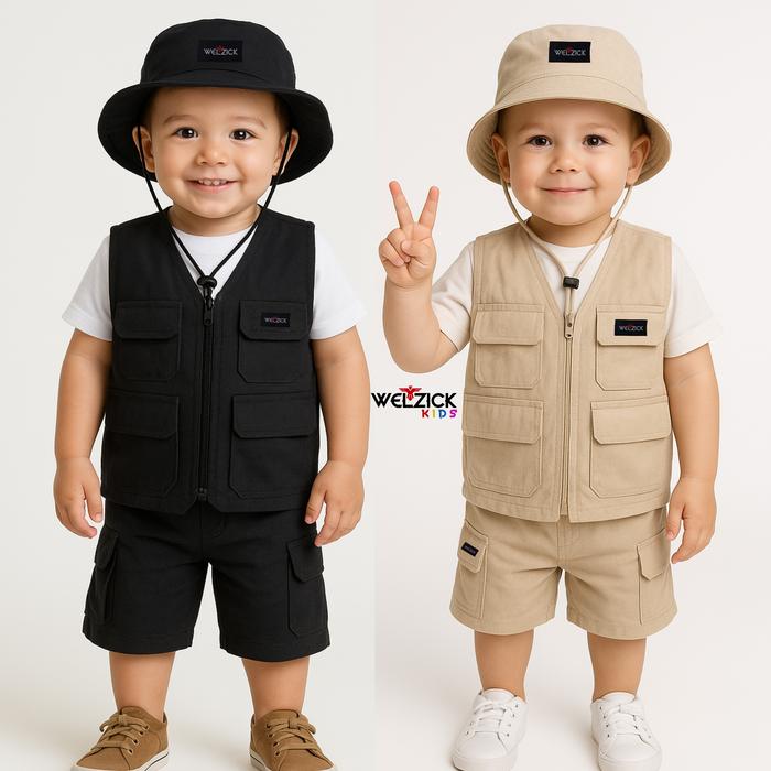Welzick - Safari Anak Set 1/9 Tahun / Setelan Outdoor Rompi Celana Topi 3in1