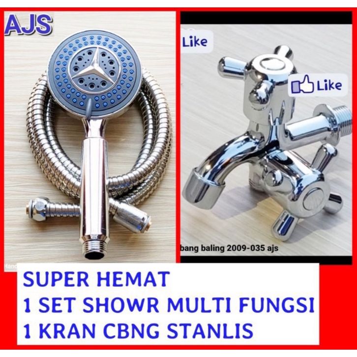 PROMO Shower Kamar Mandi Set Stainless Panas Dingin Hand Shower Multi Fungsi + Kran Cabang m0del Onda Stanlis Sua 304 U