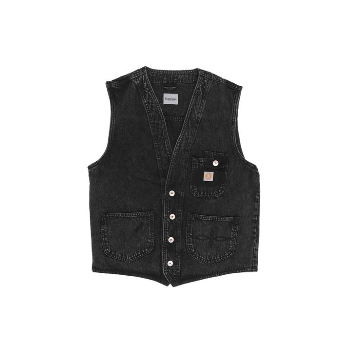 Superego Vest Rompi Jeans Denim Pria New 2021 V-neck Snow Black VDW01G