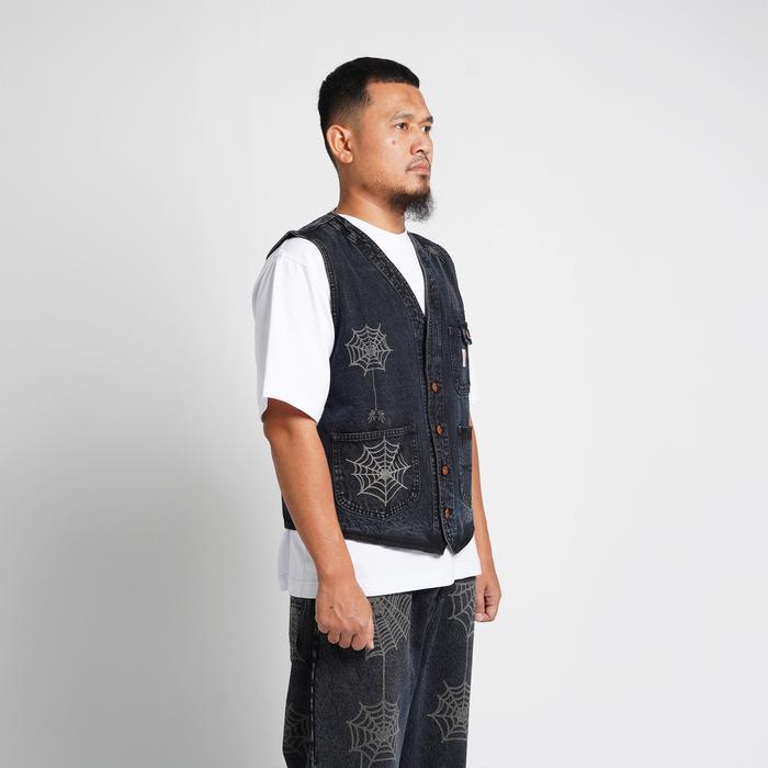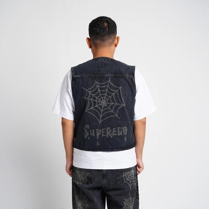 Superego Vest Tarantula Rompi Denim Pria New V-neck Snow Black VDT01A