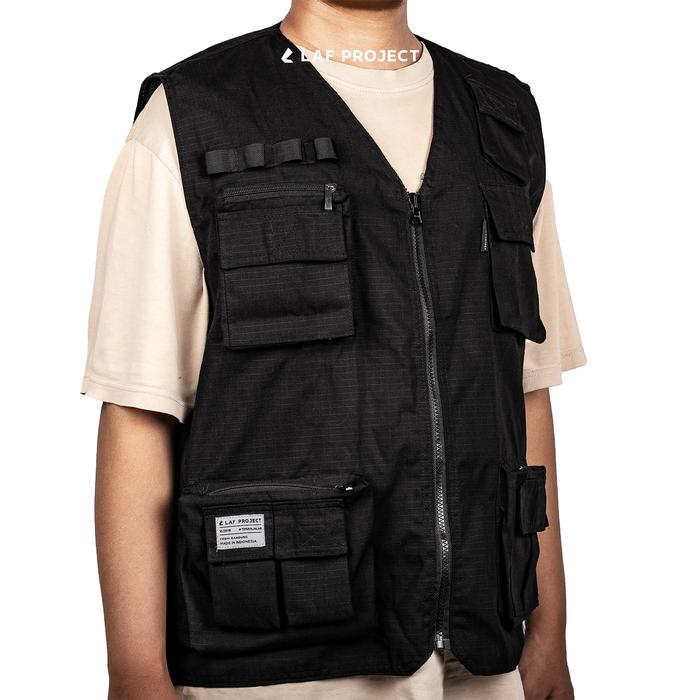 LAF Project - Rompi Vest Pria Hitam Casual Tactical Cargo Outdoor Formal