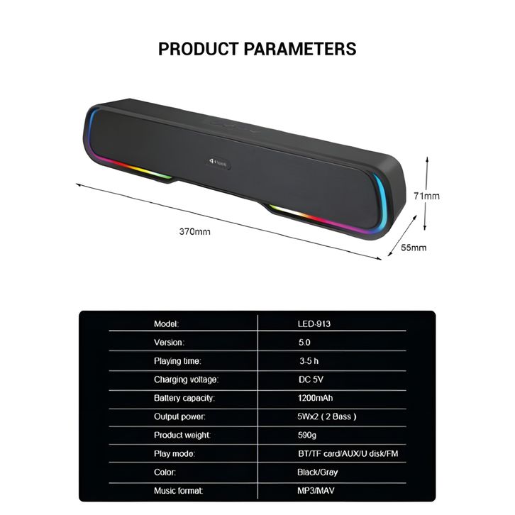 KISONLI Speaker Portable Bluetooth LED913 Stereo Bass Effect With Super Bass