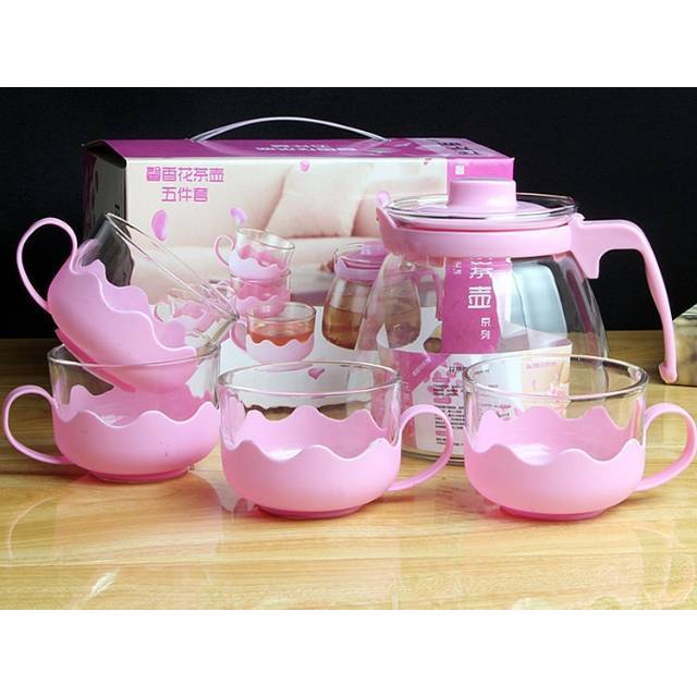 Tea Pot Set 5 In 1 Sun Glass - Paket Teko Gelas Cangkir Tempat Minum - Teapot All In One