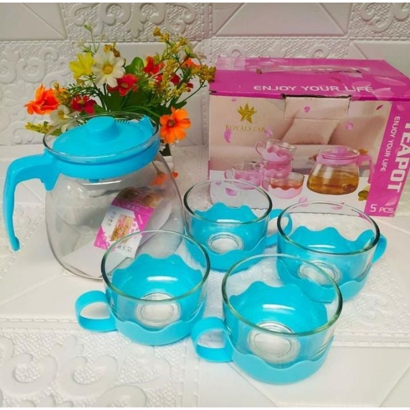 Tea Pot Set 5 In 1 Sun Glass - Paket Teko Gelas Cangkir Tempat Minum - Teapot All In One