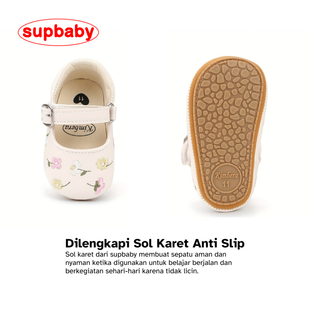 Sepatu Bayi Perempuan Embroidery Flower Usia 0 - 12 Bulan Anti Slip, Sepatu Bayi Perempuan Lucu