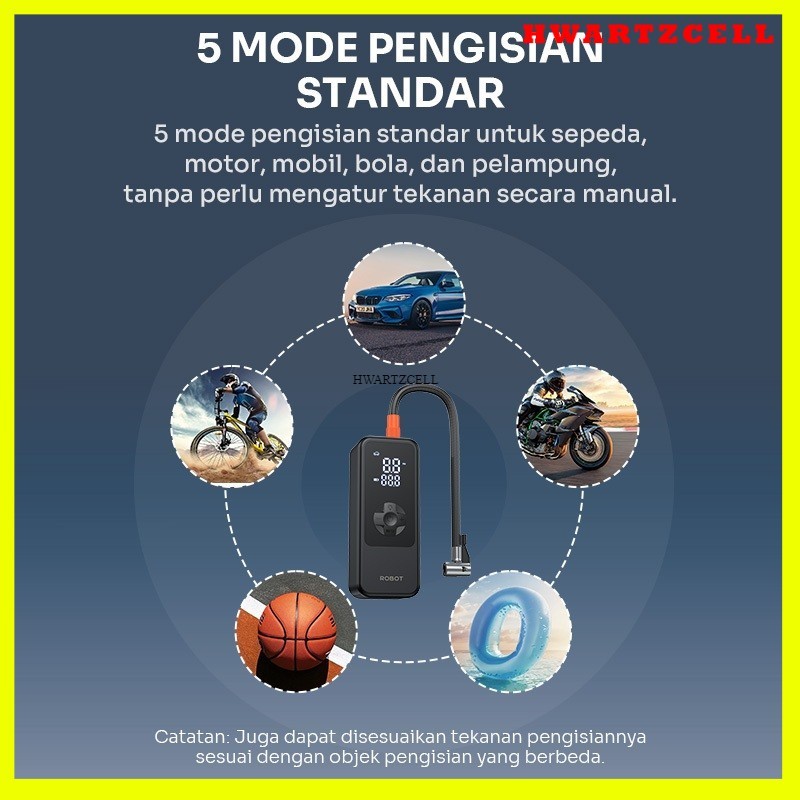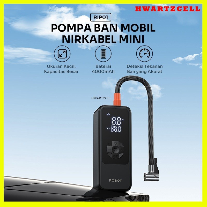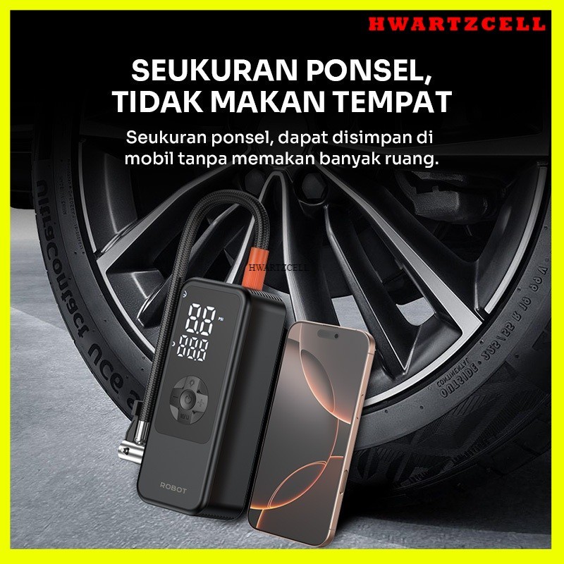 ROBOT Pompa Ban Mini portabel Kendaraan Mobil/Truk/Motor/Bola Mini 4000mAh LED Display Deteksi Akurat RIP01 Original - Garansi 1 Tahun