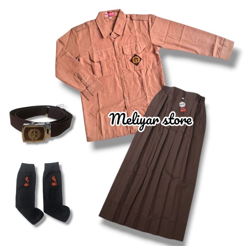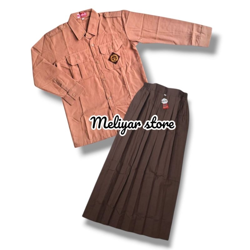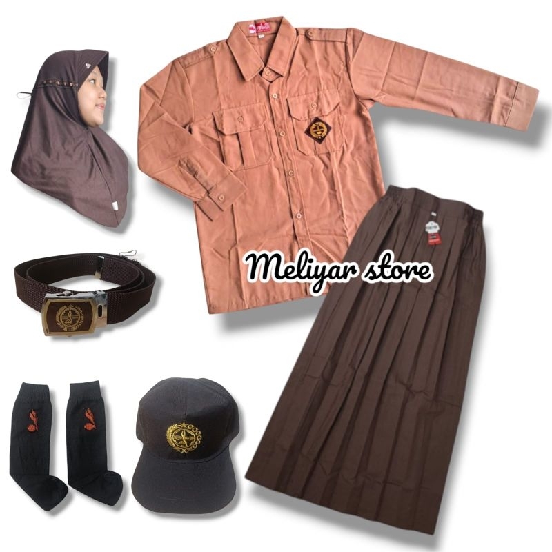 Setelan Lengkap Seragam Sekolah SD Perempuan Pramuka Penggalang Lengan Panjang Rok rempel Panjang + Hijab kelas 1-6