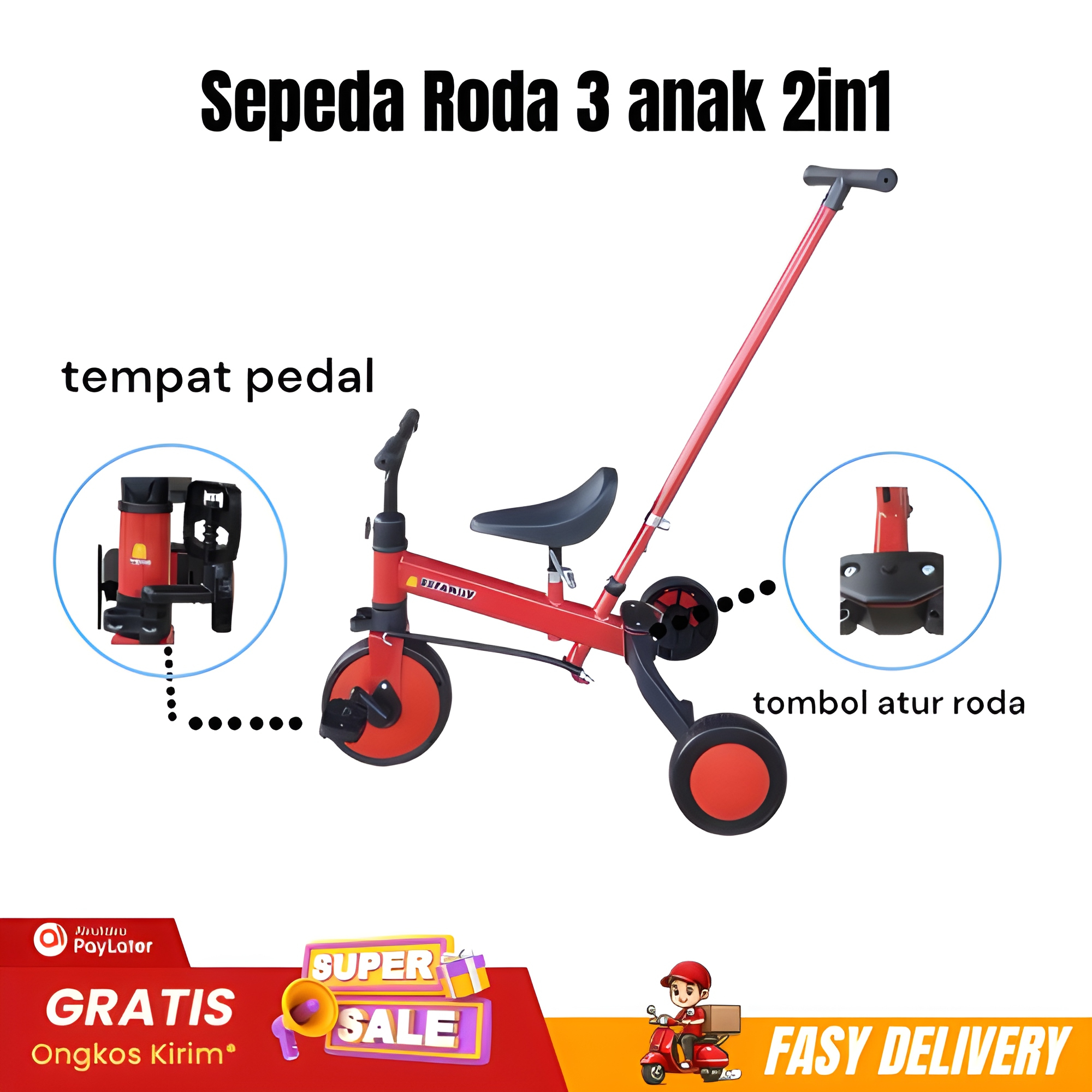 One-M97 Mainan Sepeda Roda 3 anak 2in1 mainan sepeda keseimbangan anak