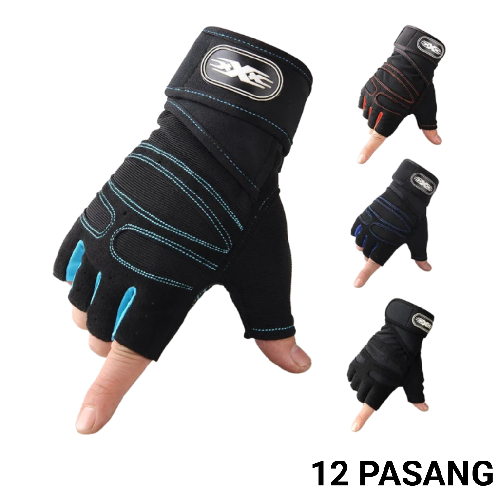 ( 12 PASANG ) Sarung Tangan Setengah Jari Motor Berkendara Random
