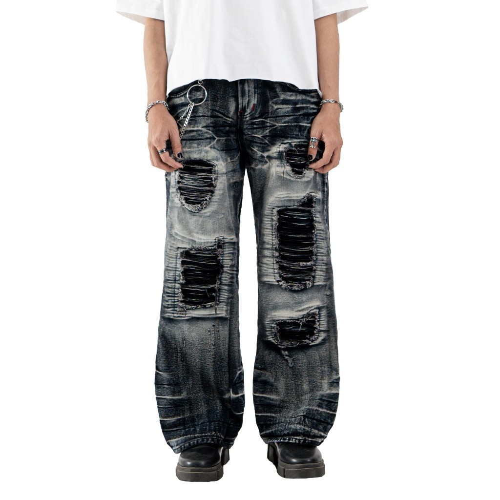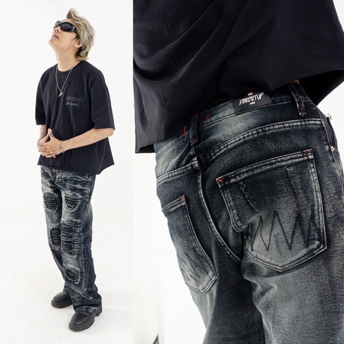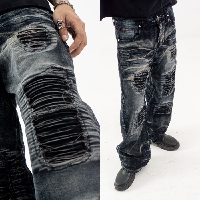 H1 Baggy Biker Celana Jeans Smoke Grey Denim 15 OZ