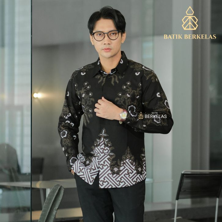 Batik Prabu Hitam Kemeja Batik Pria Slimfit Lapis Furing Katun Elegan Lengan Panjang Untuk Kondangan Lamaran Kantoran