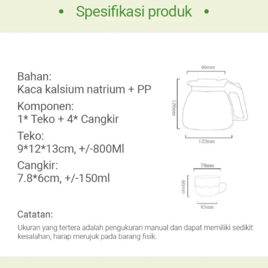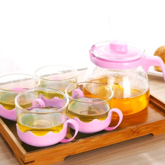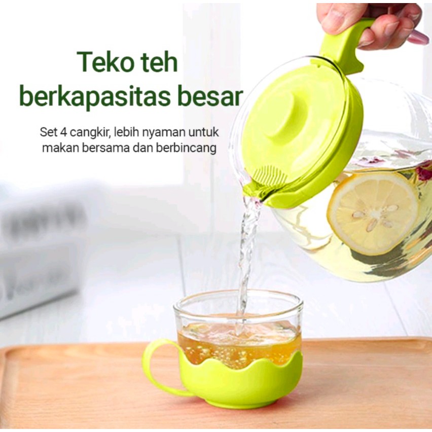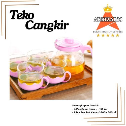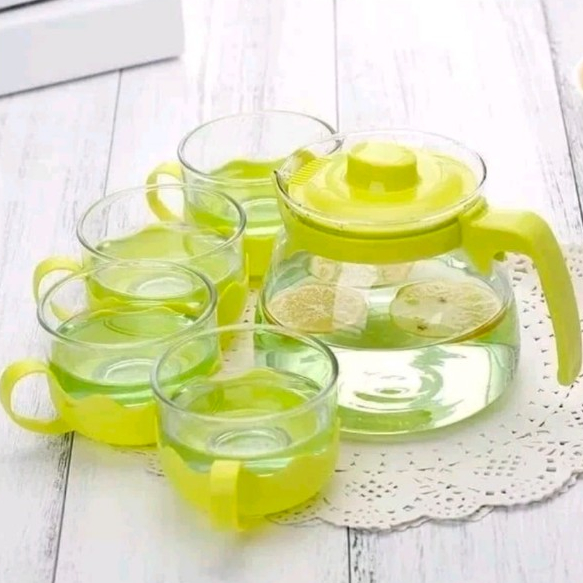 _TEA POT KACA SET TEKO CANGKIR WARNA 5 IN 1