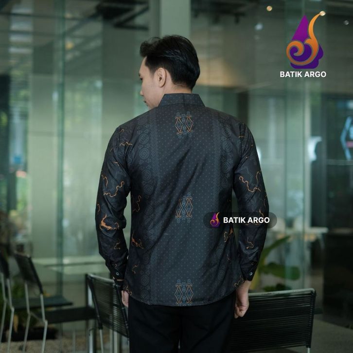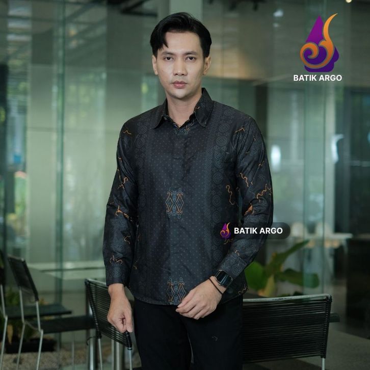 BATIK ARGO Widura Hitam Kemeja Batik Pria Slimfit Lapis Furing Katun Elegan Lengan Panjang Untuk Kondangan Kantor