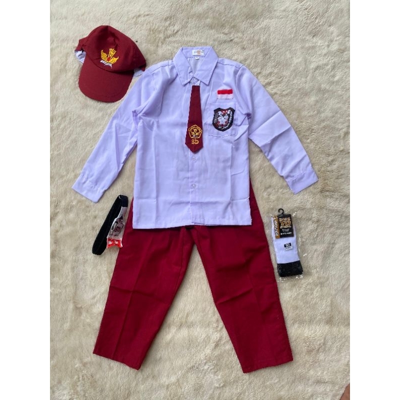 STELAN SUPER LENGKAP SERAGAM SEKOLAH SD LENGAN PANJANG MERAH PUTIH ANAK COWOK