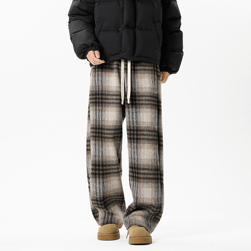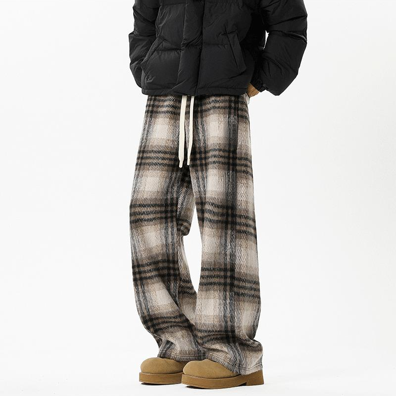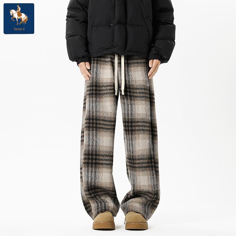 Tamp-X Oversize Jumbo Celana Panjang Pria Baggy Loose Pants Santai Kotak Kotak Korean Style Straight Kulot Khaki Pinggang Karet
