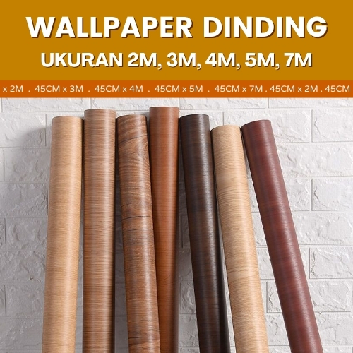 Stiker Wallpaper Dinding Serat Kayu Alami Walpeper Kayu Coklat Pekat Perabotan Lemari Panjang 1M