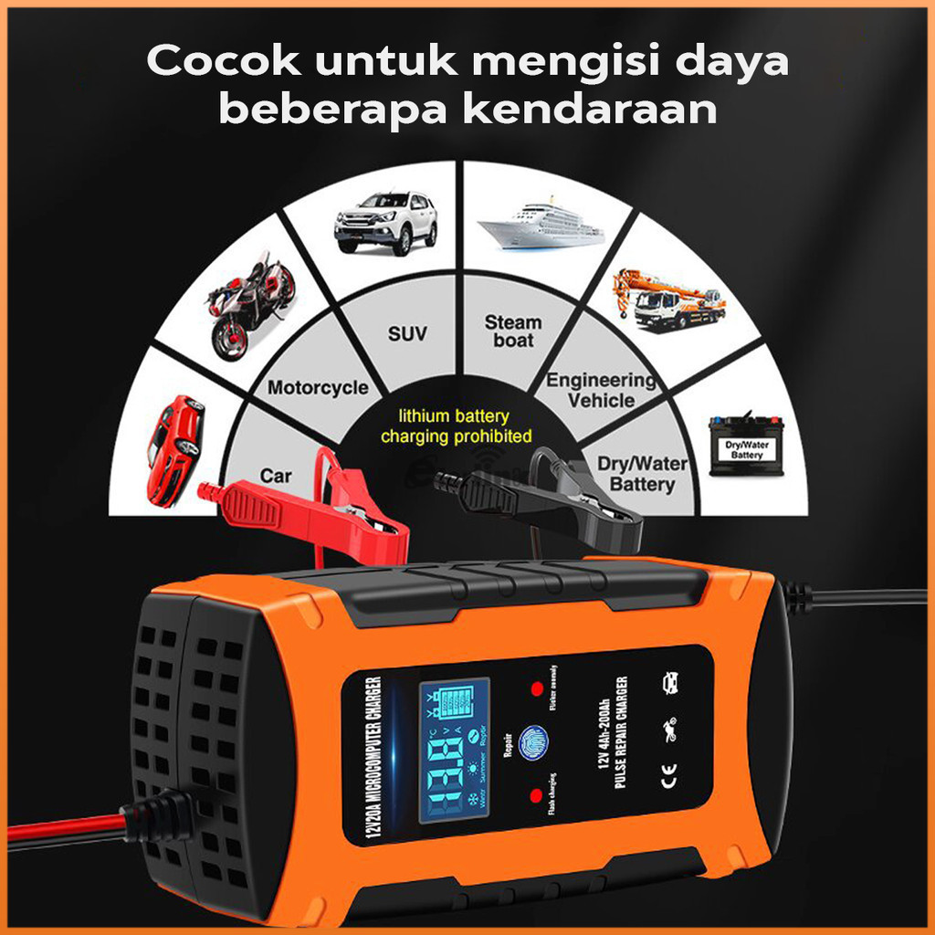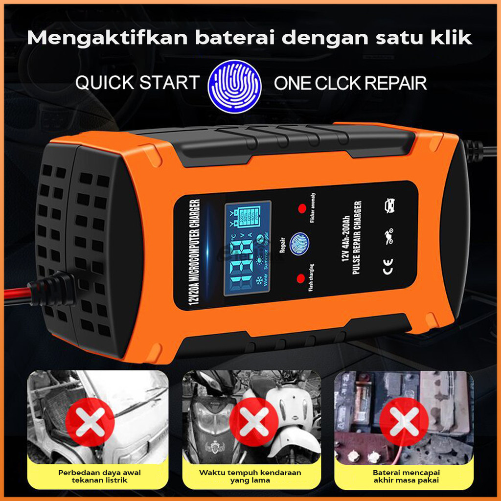 12V20A Repair Aki Pulse Auto Repair Mobil Moto Baterai Charger Intelligent Aki dengan LCD