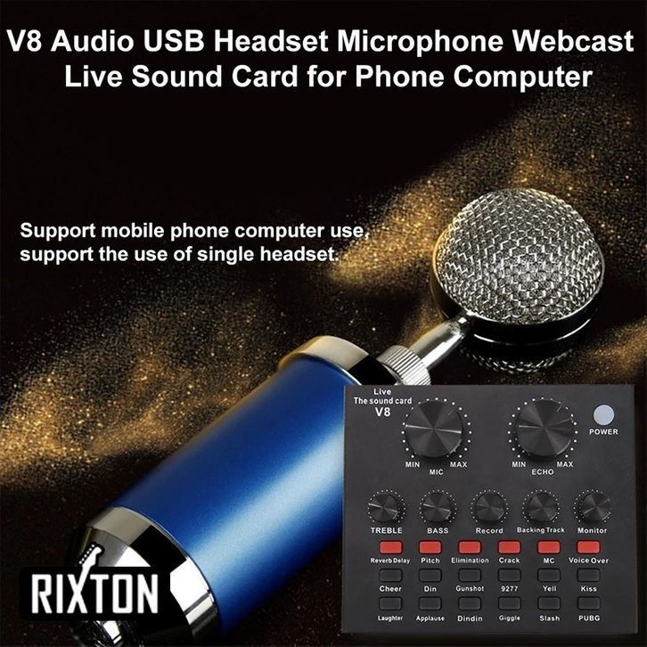 Audio USB Eksternal Soundcard Mikrofon Siaran Headset V8 Hitam