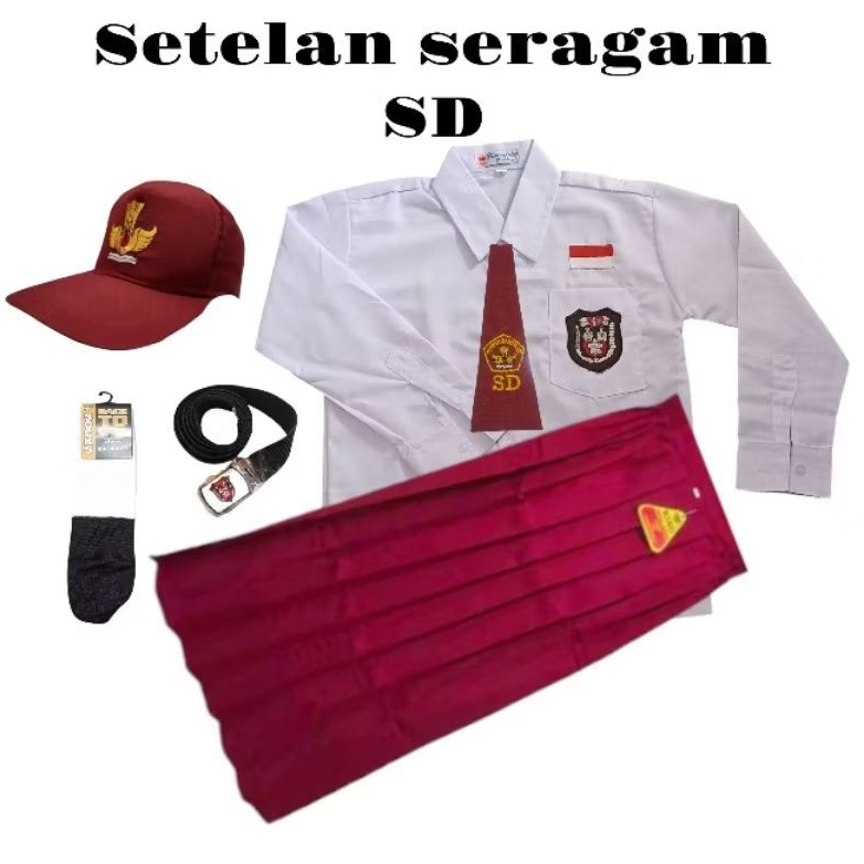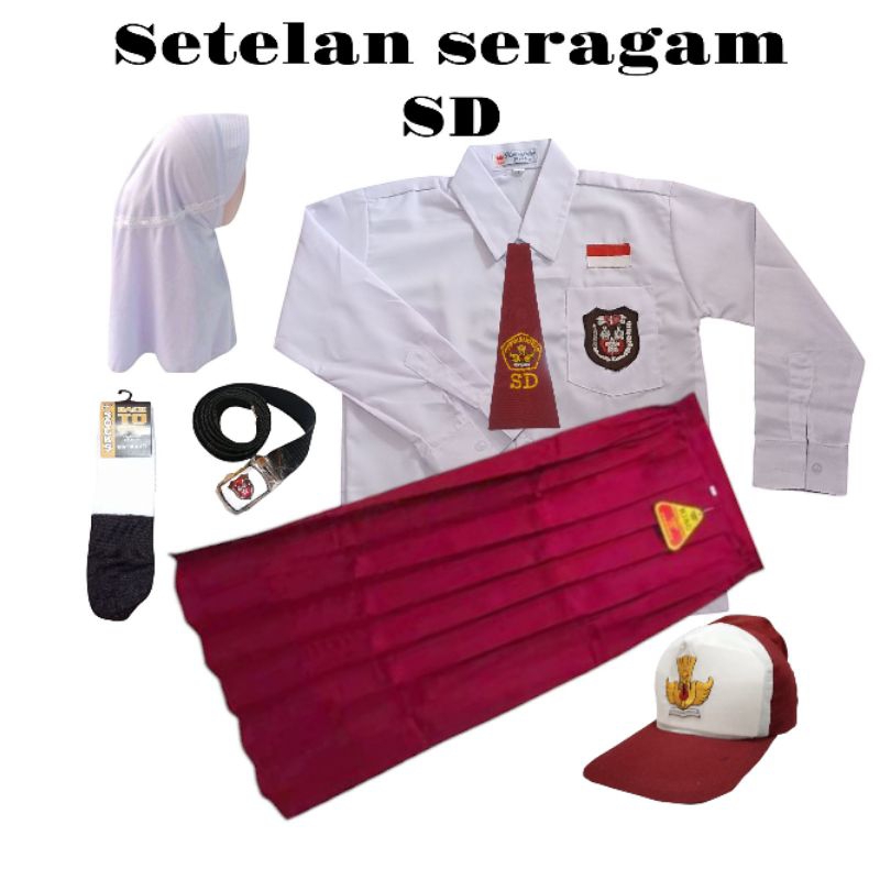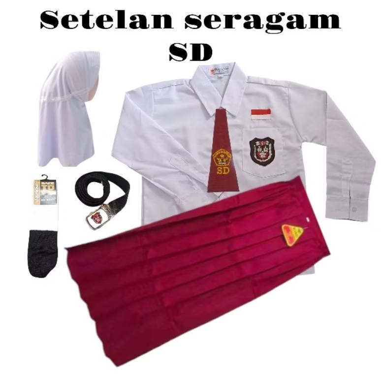 Setelan seragam sekolah SD merah putih anak perempuan kelas 1-6 SD Set baju panjang SD rok panjang merah