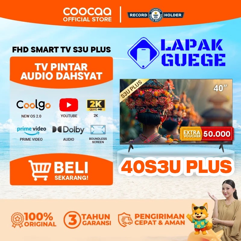 LED TV COOCAA 40 INCH COOLITA 3.0 SMART TV YOUTUBE/ PRIME VIDEO DOLBY AUDIO (COOCAA 40S3U PLUS)