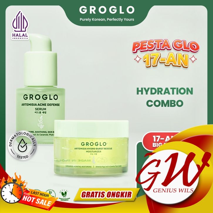 GROGLO - Paket Skincare 2pcs Moisturizer + Serum Melembabkan, Oil Control, Anti Acne, Hydrating, Glowing