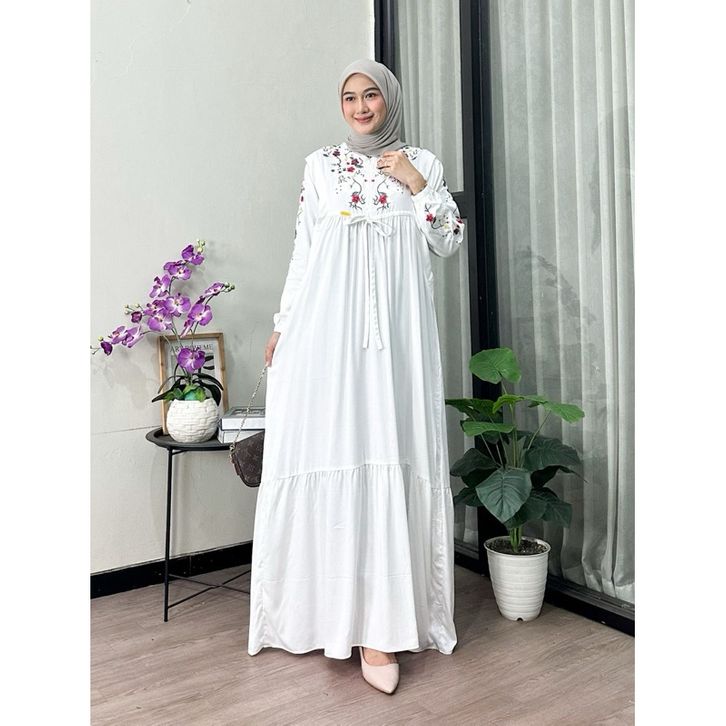 New Launcing Amanda Maxi Dress Gamis Bordir Bahan Rayon Twill Signature Tebal Dan Adem