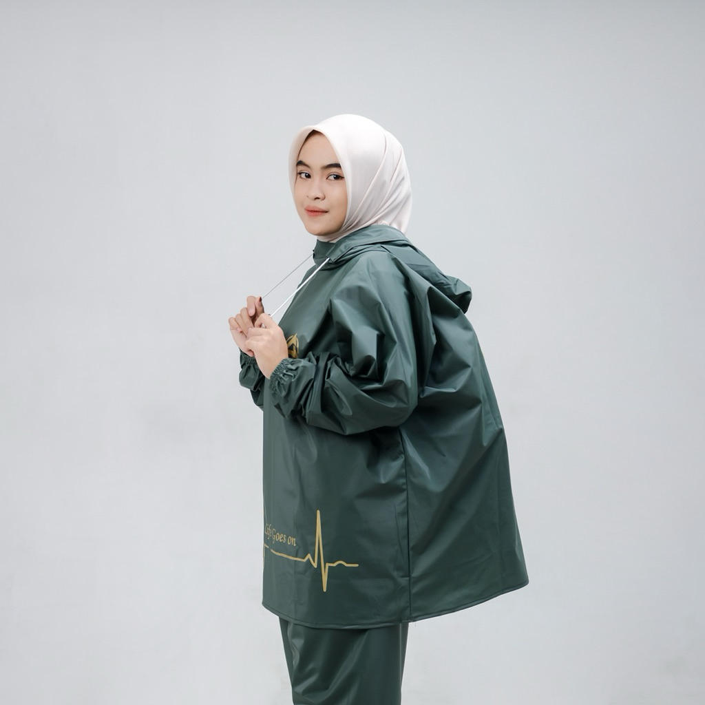 Jas Hujan Setelan Hoodie Tanpa Ziper Pria Wanita Dewasa Waterproof Tebal Kuat Elastis