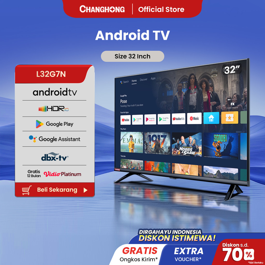 [GOOGLE ASSIST] CHANGHONG 32 INCH ANDROID SMART TV DIGITAL LED TV L32G7N NETFLIX YOUTUBE PLAYSTORE