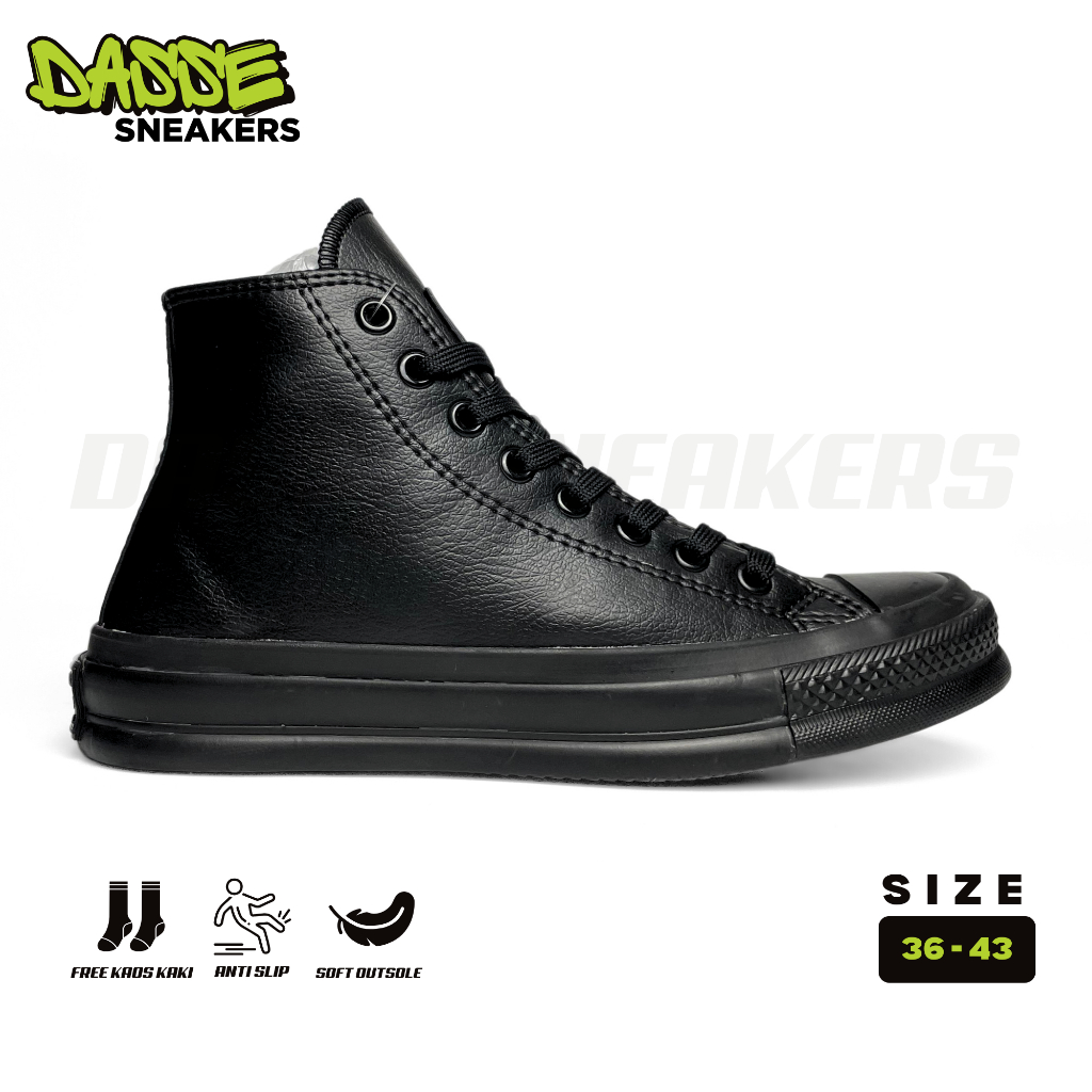 Dasse Sneakers - Converse High Leather Full Black - Sepatu Sneakers Casual Klasik Pria & Wanita