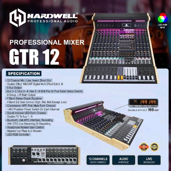 Mixer Audio Hardwell GTR 12 GTR12 Original 12 Channel Double Effect 199 Dsp