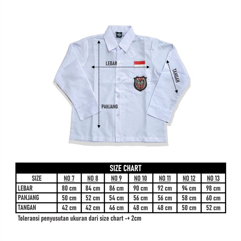 Baju Atasan Seragam Sekolah SD putih Lengan Panjang Ukuran Kelas 1-6