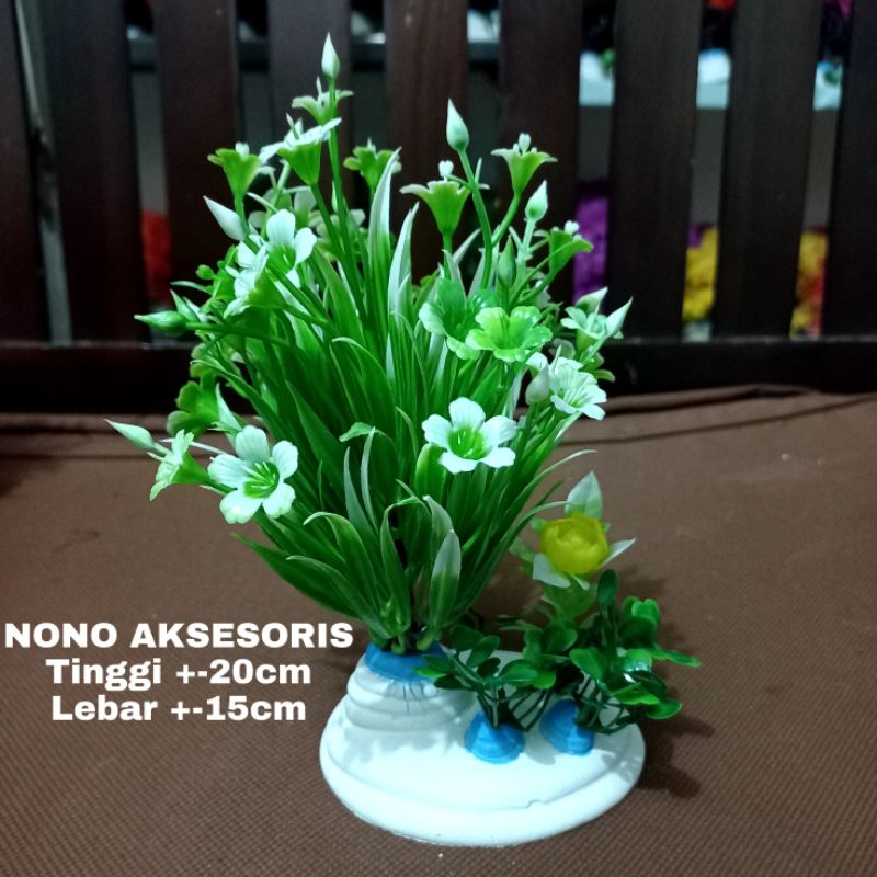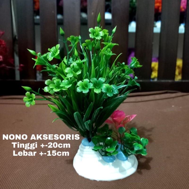 tanaman plastik hiasan aquarium akuarium aquascape rimbun bunga tinggi +-20cm