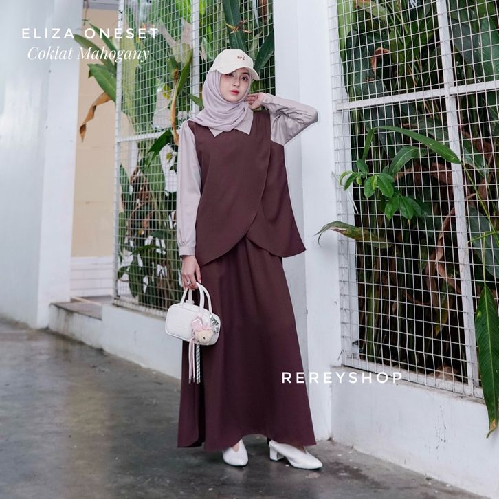 Eliza Set Menyatu Dewasa One Set Wanita Kekinian Set Rok Bahan Royal Twist Premium