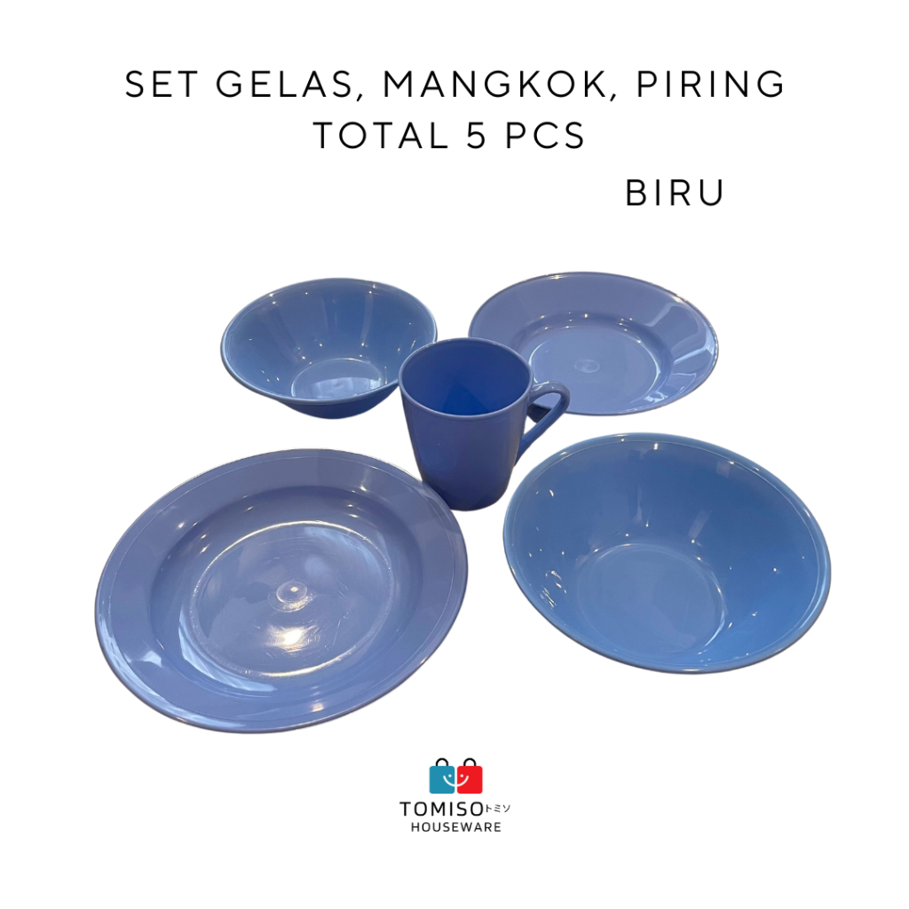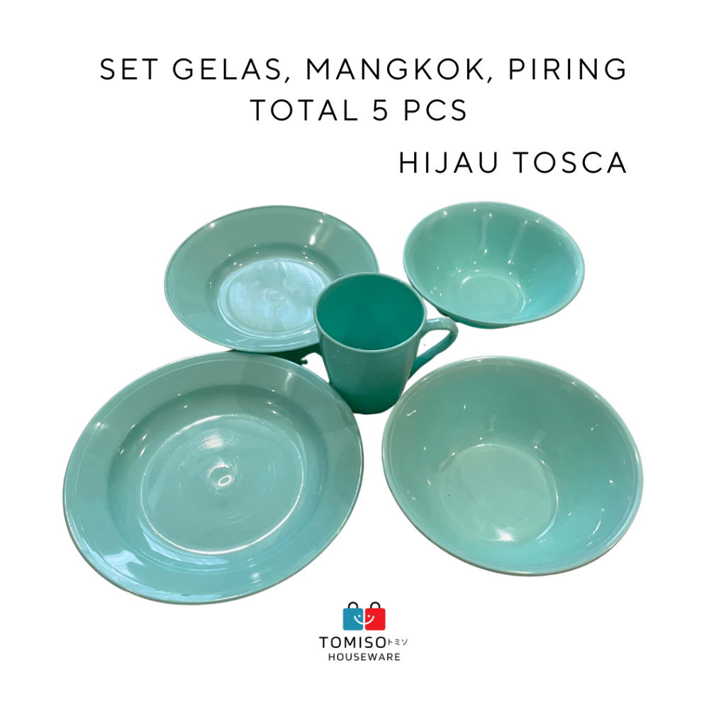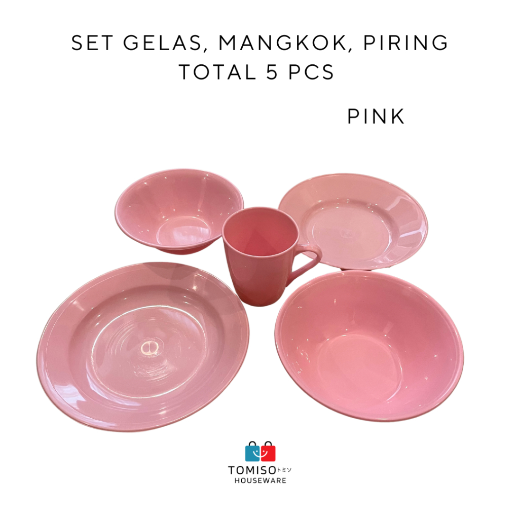 SET GELAS, PIRING, MANGKOK TOTAL 5 PCS | PAKET ALAT MAKAN SERBA PINK SERBA BIRU SERBA HIJAU