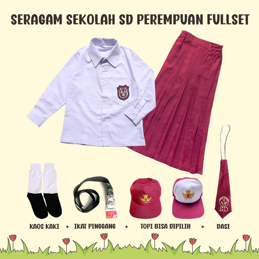 Prabukids Setelan Seragam Sekolah SD Full Set Anak Perempuan Kelas 1-6