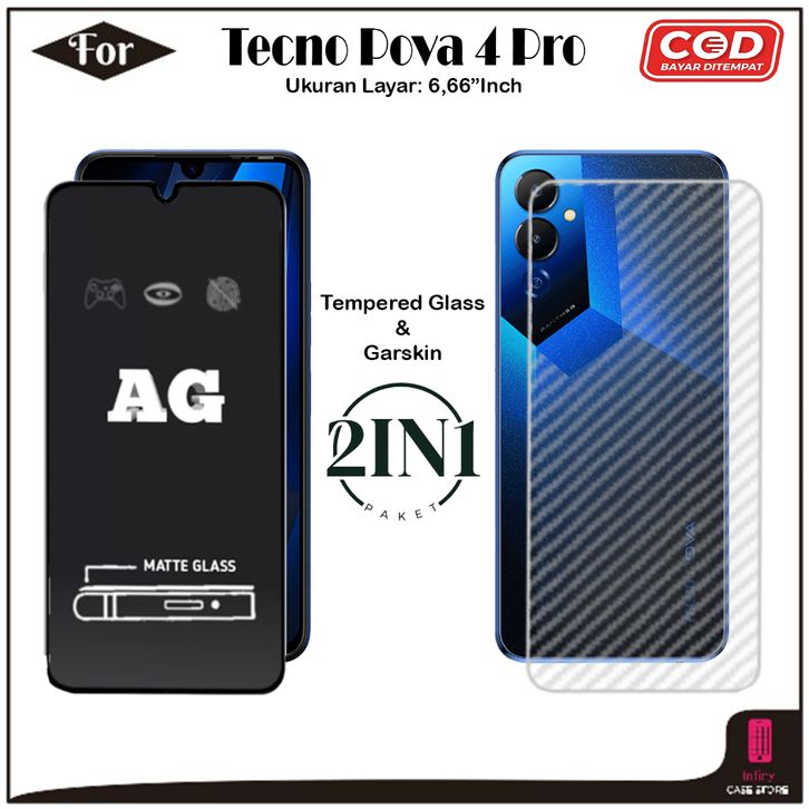 Promo Paket 2IN1 Tempered Glass Tecno Pova 4 Pova 4 Pro Anti Gores Kaca Full Cover