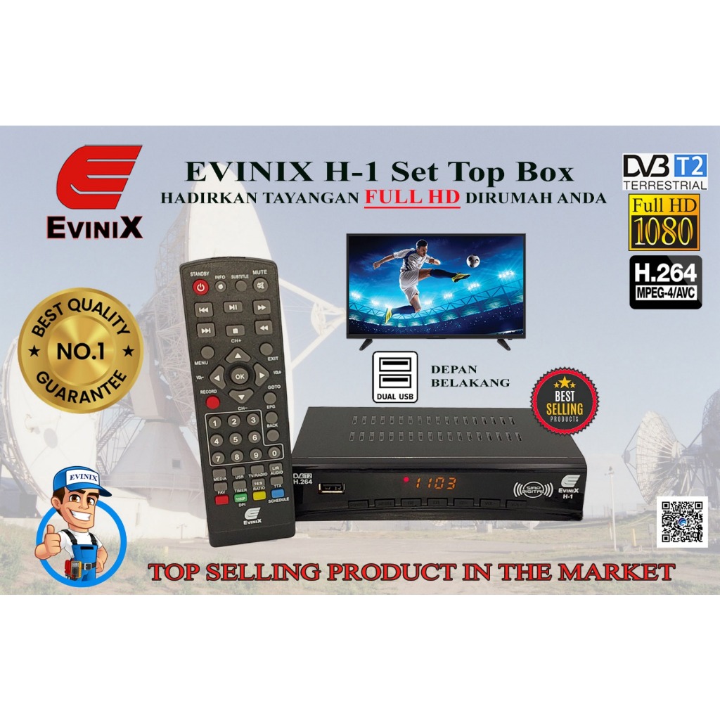 SET T0P BOX EVINIX H1 STB SIARAN TV DIGITAL DVB-T2 DONGLE WIFI BELI TERPISAH, FREE KABEL HDMI